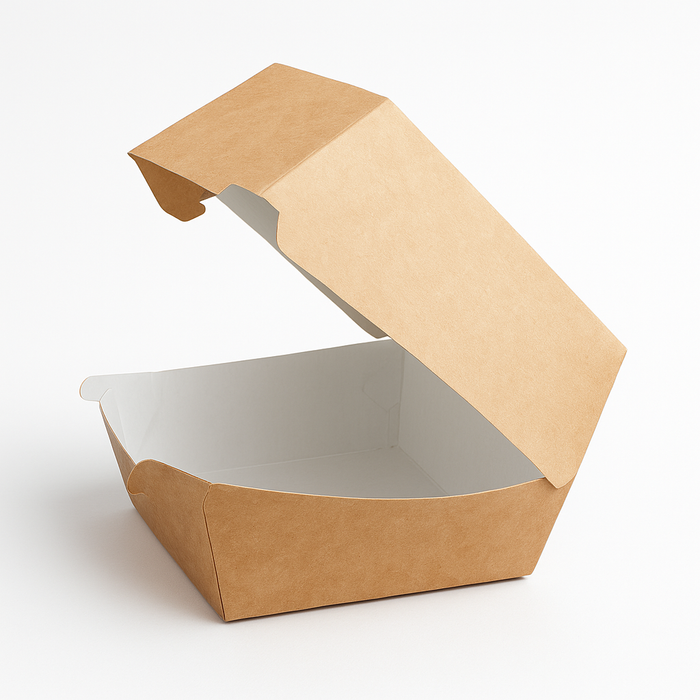 Les boîtes à burger écologiques en papier sont entièrement naturelles et biodégradables. Ils ont une couleur kraft brun clair uniforme à l’extérieur. Ces boîtes sont aussi bien utilisées dans les grands restaurants que dans les petits fast-foods et food trucks. Ils peuvent servir des hamburgers sur place et à emporter. L'emballage en papier pour burger est très pratique et facile à fermer. Ils sont disponibles en deux tailles, ce qui permet de servir différents types de burgers. Puisqu’ils ne sont recouverts d’aucun matériau supplémentaire, ils sont compostables.