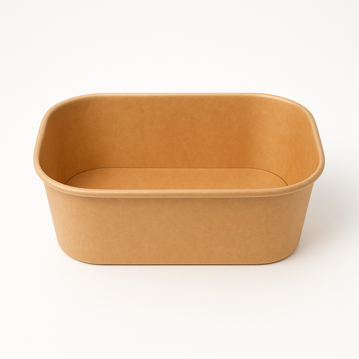 Récipient à salade rectangulaire en papier marron, conçu pour plus de commodité avec une capacité de 1000 ml. Parfait pour une présentation élégant...