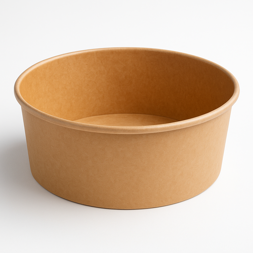 Récipient à salade en papier brun, conçu pour le confort avec une capacité de 1000 ml et un diamètre de 150 mm. Un choix écologique parfait pour vo...